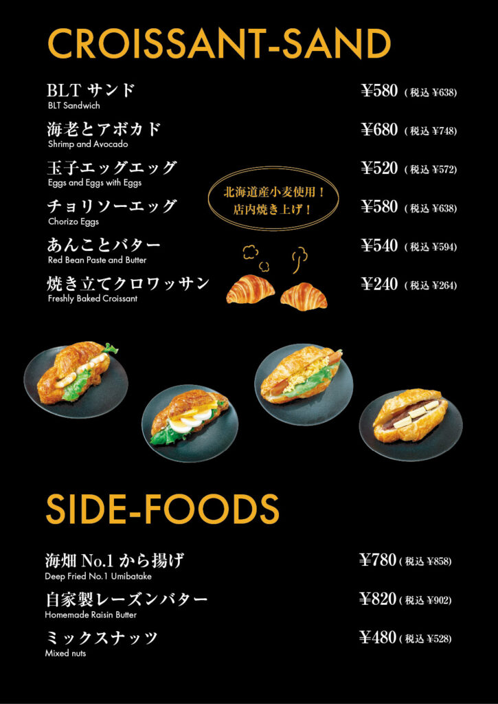 店内で焼き上げたクロワッサンをはじめ、姉妹店の海鮮居酒屋から届く活はまぐり・生めんたいこを使用したクリームパスタ、六本木アマンドさんとのコラボケーキなど、様々なメニューがございます。カフェ・喫茶はもちろん、レストラン使いとしてもご利用いただけます。